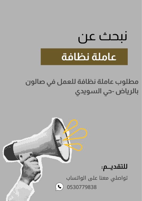 Cleaning Female cleaner needed for a women salonin a high - Jeddah - Al Yasmin district. The requirement is seriousness in work, commitment to general cleanliness and sterilization, maintaining the order of the salon, and the ability to work within a team, with commitment to working hours and administrative