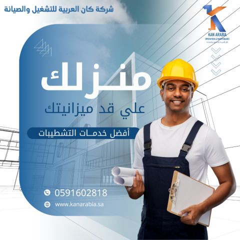 Finishing, Decoration, and Renovations - Quality at a Great Price Are you looking for quality and craftsmanship at competitive prices Kan Arabia Company offers you the best finishing, renovation, and decoration services with the highest quality standards. We have a professional team with extensive experience, ensuring your work is executed with precision and professionalism. We use the finest materials