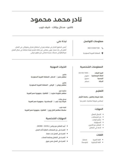 موظف استقبال شقق مخدومة خبرة خمس سنوات على برنامج نزيل. الجنسية مصري. حاصل على ليسانس لغة عربية جامعة الأزهر في القاهرة. ابحث عن عمل والله ولي التوفيق