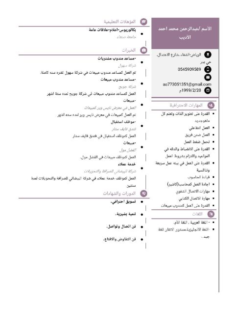 اشتغلت أربع سنوات أسوق مركزيه أعرف جميع الأصناف اشتغلت على الكاشير سنة ونصف وأعرف اشتغل أي شغل بالسوق وأعرف جميع الأصناف وأعرف اشتغل جميع الأقسام