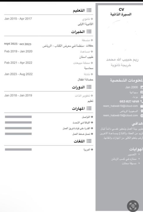 أخصائية تسويق وكونتنت كريتور لعيادات التجميل / وموظفة استقبال (جلدية - لايزر - أسنان - نساء وولادة) خبرة 3 سنوات إقامة متواجده في الرياض
