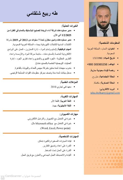 مدير مخازن وأمين مستودعات خبرة سبع سنوات في ادارة مخازن ومستودعات مصانع الكابلات الكهربائية ومصنع اعادة تدوير وتحبيب البلاستيك وعلى دراية كاملة بكل ما يخص انتاج الأسلاك الكهربائية واعادة تدوير وتحبيب البلاستيك وأجيد العمل على برامج المخازن وحزمه Microsoft office وأجيد قيادة جميع السيارات والرفعات إقامة سارية ورخصة سارية ومقيم في الدمام وجاهز للعمل فورا للعمل