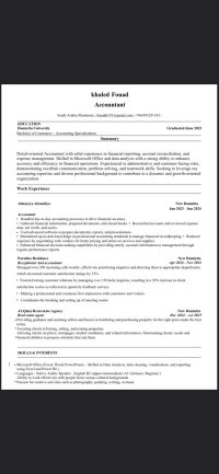 محاسب ذو خبرة يمتلك خبرة عملية في المحاسبة المالية اعداد التقارير، تسوية الحسابات وإدارة المصروفات بدقة عالية. عملت في بيئات مختلفة أكسبتني قدرة قوية على التنظيم متابعة التفاصيل، وتحسين كفاءة العمل المالي لدي خبرة في خدمة العملاء والإدارة الأمامية الى جانب خبرة جيدة في مجال العقارات مما عزز مهاراتي في التواصل حل المشكلات، والعمل تحت الضغط