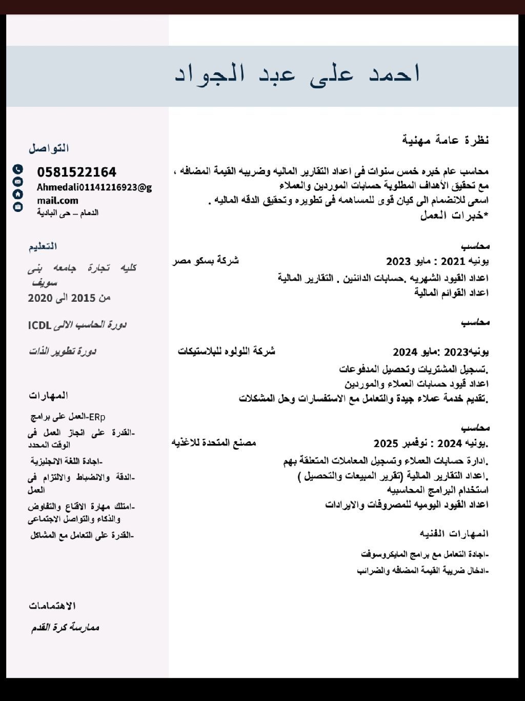 محاسب خبرة 3 سنوات ابحث عن وظيفة في الحسابات خبرة في عمل ضريبة الدخل والزكاة اعداد التقارير المالية والقيود المحاسبية وأيضا عملت في مجال المبيعات كمندوب مبيعات