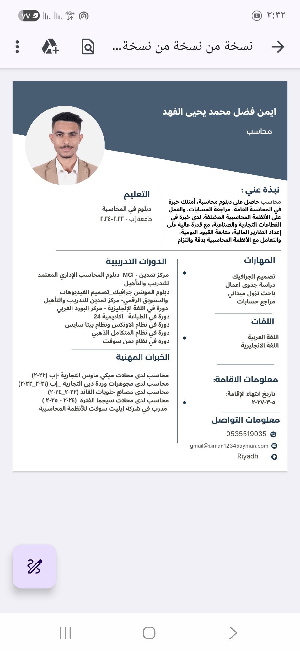 متوفر محاسب مالي أبغى مؤسسة أو شركة وعندي السيفي موجود اشتغلت بعدة شركات واقامتي فيها سنة تواصل معي واتساب اذا سمحتم