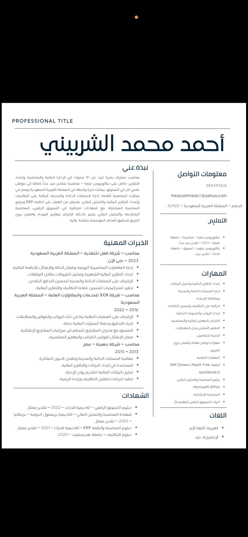 محاسب خبرة 8 سنوات في مجال المقاولات والمطاعم في حفر الباطن