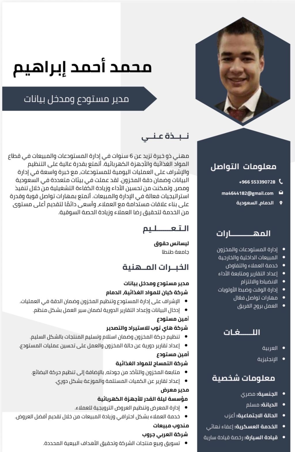 ابحث عن وظيفة أمين ومدير مستودع في الشرقية لدي الخبرة في ادارة المستودعات الكبري للمواد الغذائية وامتلك المهارة والسرعة في استخدام برامج الكمبيوتر وبرنامج اونيكس برو لنظام المستودع وعندي الخبرة لاستلام البضائع ومتابعة تاريخ الصلاحية للمنتجات وترتيبها داخل المستودع