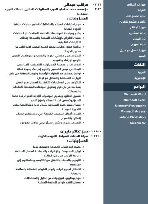 أنا محمد حسين 30 سنة بكالوريوس نظم المعلومات الادارية خبرة بالمملكة العربية السعودية 7 سنوات خبرة في مجال المبيعات والتسويق والمشتريات خبرة في مجال المقاولات والقطاعات الحكوميه والبلديات وقطاع الصيانة والتشغيل والمشاريع الحكوميه. خبرة في ادخال البيانات والفواتير وعروض الأسعار بالشركات ومواد البناء وأيضا خبرة بالاستقبال بالفنادق وادارة العقارات وخبرة بشركات المياه. أحمل رخصة سعوديه وإقامة نظاميه