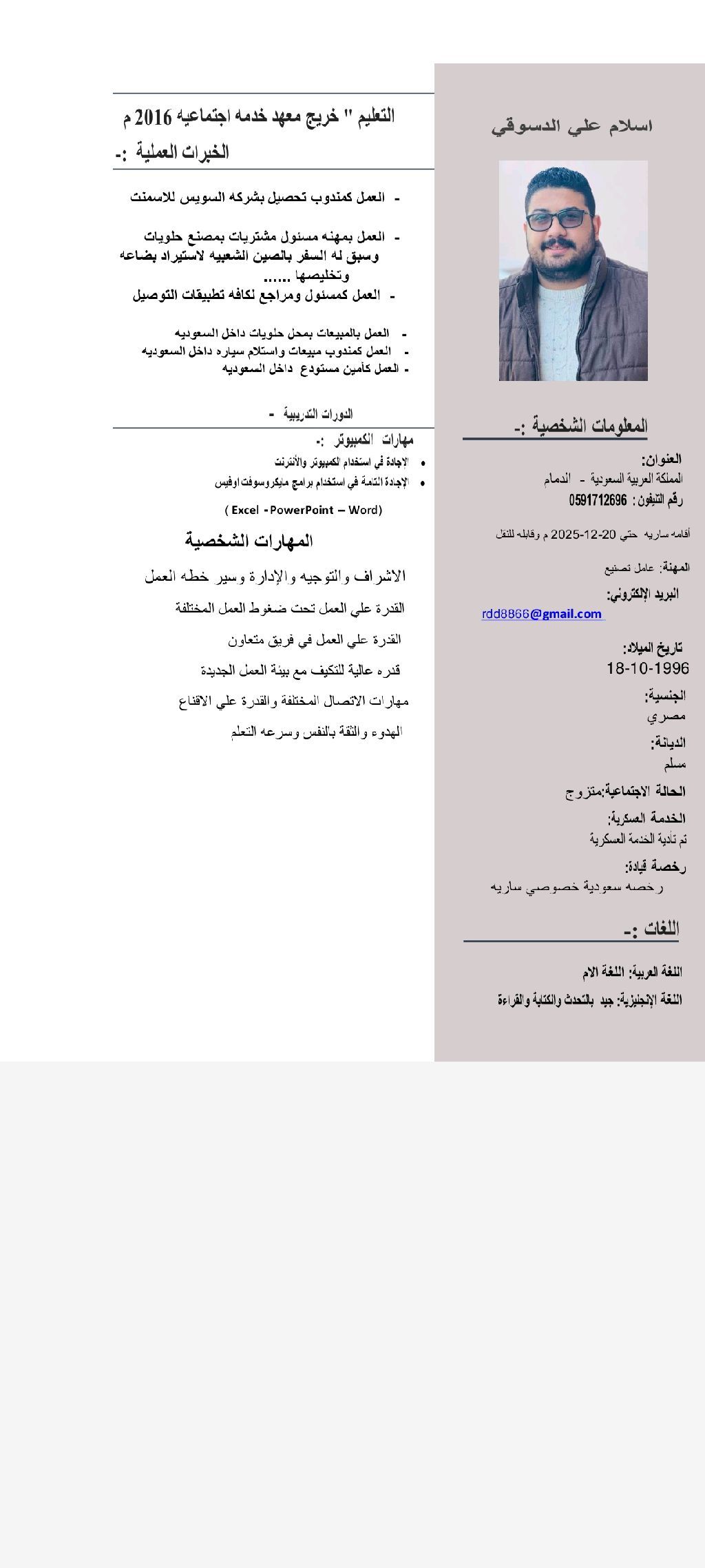 خبرة 5 سنين في مجال المشتريات وأمين مستودع كنت ماسك جميع التطبيقات التوصيل