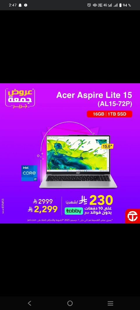 لابتوب للبيع لسه جديد نزلت فيه مايكروسوفت لسهموا مستعمل بيع لغرض السفر ثمن 2299 + مايكروسوفت يصير 2400 لمعالج Intel Core i5 (تختلف الأجيال من العاشر الى الثالث عشر، مثل i5 - 1035G1 أو i5 - 1235U) الذاكرة العشوائية (Ram) 8 جيجابايت DDR4 أو DDR5 التخزين قرص صلب من نوع SSD بسعة 512 جيجابايت الشاشة 15.6 بوصة بدقة Full HD (1920*1080) أو HD (1366*768) بتقنية IPS وباضاءة خلفية LED
