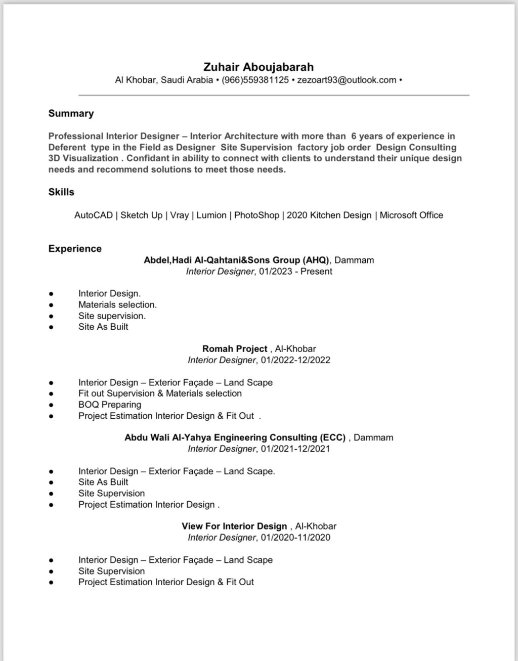 مصمم داخلي خبرة 8 سنوات في مجالات مختلفه تخدم التصميم الداخلي عضو معتمد في هيئة المهندسين متواجد في مدينة الخبر ابحث عن عمل في الخبر