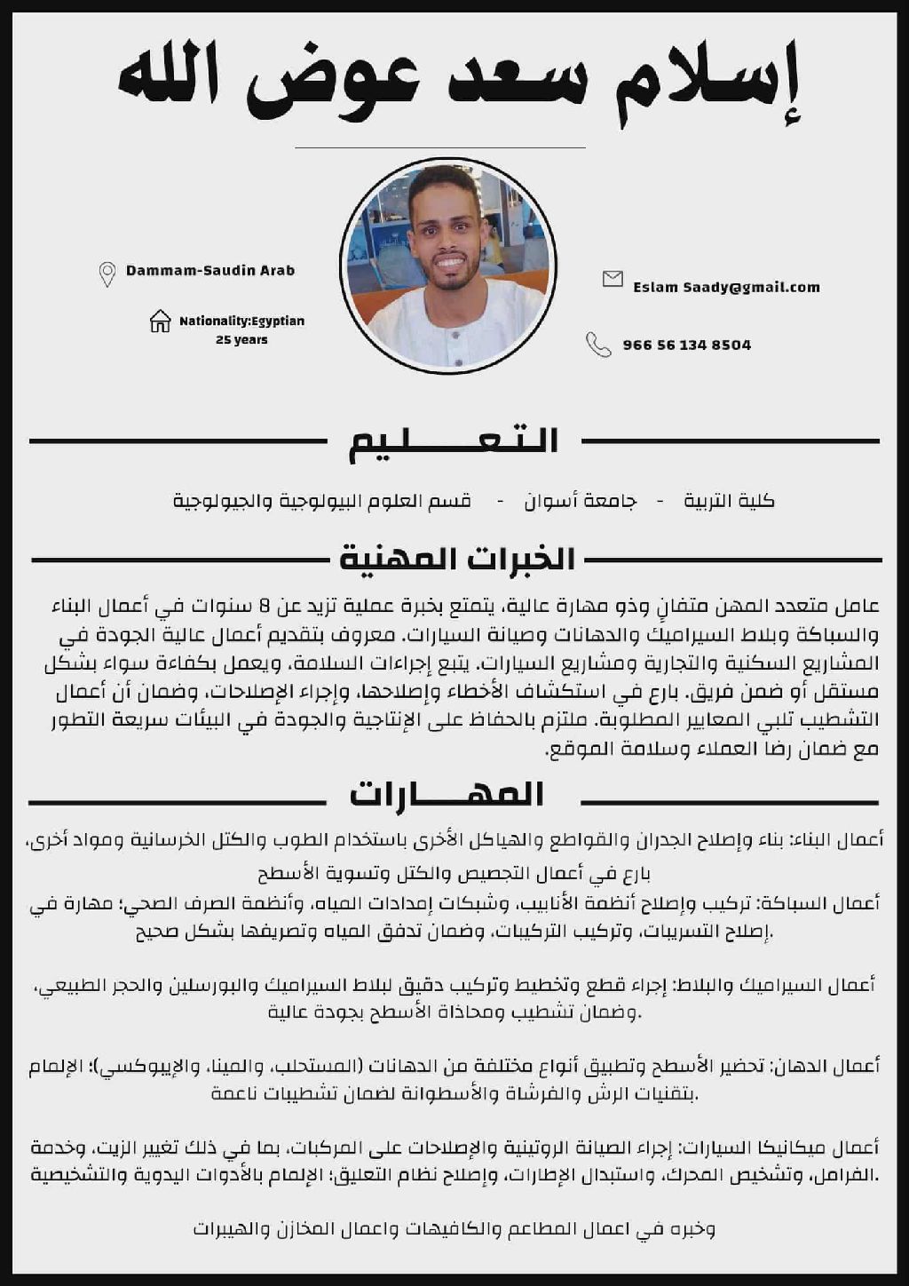 محتاج شغل في أي شركة مقاولات فورمان أو سفتي خبرة في مجال المقاولات لمدة 2 سنة مطعم كافية هايبر خبرة في جميع المجالات