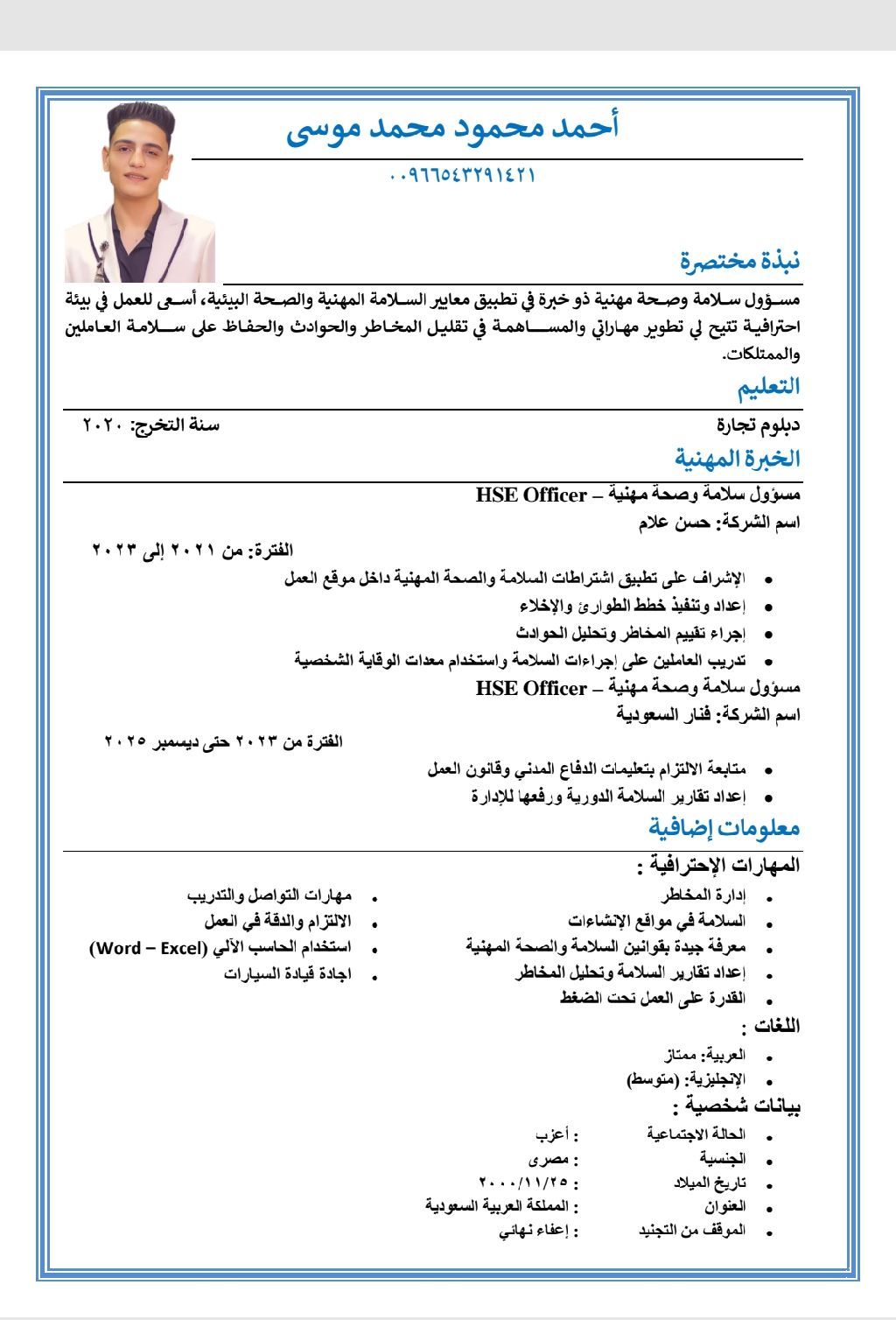 مشرف انشاءات تشغيل عمال ومعدات + تشغيل جهاز ليفل + مراقب أمن وسلامة خبرة 3 سنين ابحث عن عمل