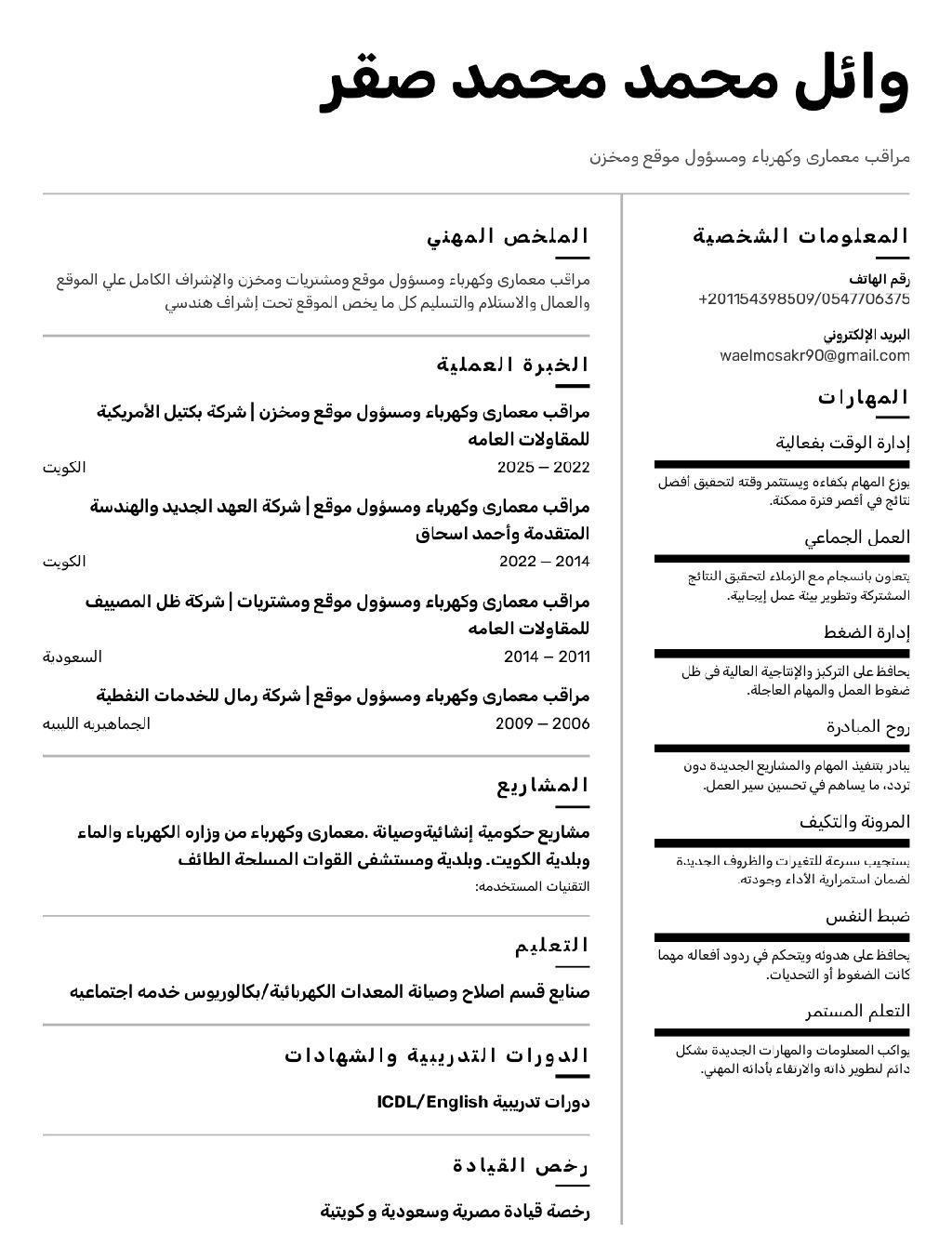 مراقب معماري ومراقب كهرباء ومراقب عمال