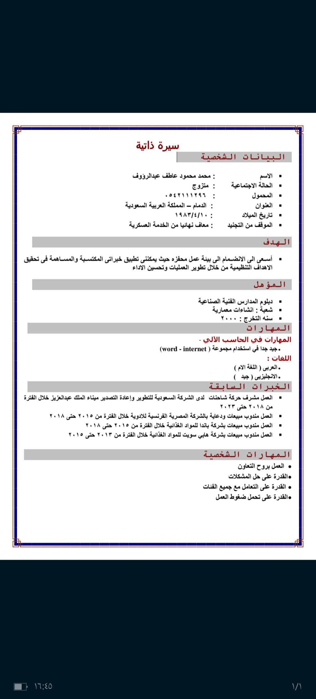 مشرف حركة متفرغ العمر 42 سنة ابحث عن وظيفة