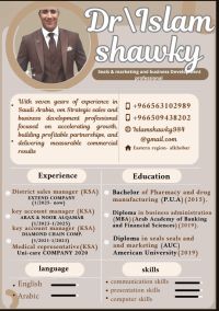 خبير مبيعات وتسويق وتطوير أعمال في مجال المقاولات، يمتلك خبرة ممتازة في استقطاب المشاريع الكبرى، إدارة العلاقات الاستراتيجية، والمساهمة الفعالة في نمو الشركات