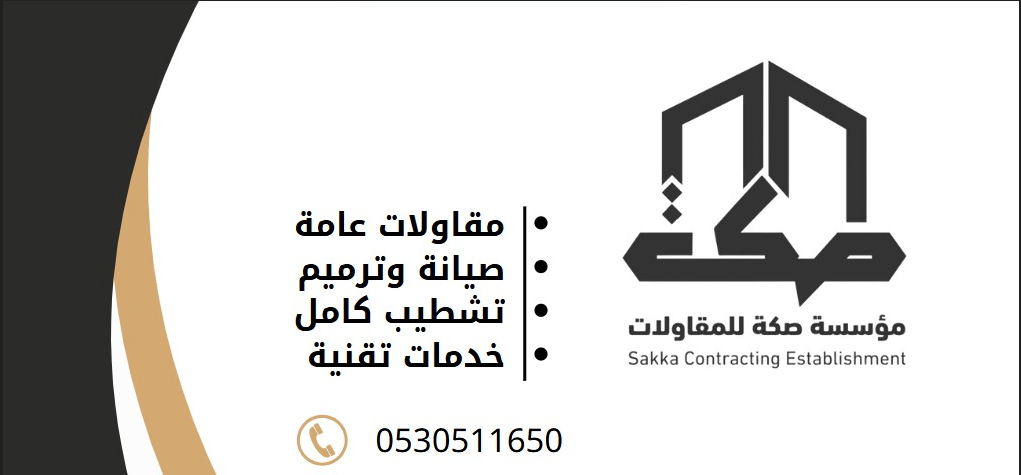 مؤسسة صكة للمقاولات تعمل في مجال الترميم والصيانة والتشطيبات بجودة عالية وخبرة ميدانية نقدم خدماتنا في الدمام والخبر والمناطق المجاورة بتواجد مستمر وفريق عمل متخصص ننفذ جميع أعمال الكهرباء والسباكة والدهانات والبلاط والجبس والديكورات الحديثة نوفر أيضا خدمات العزل الحراري والمائي للأسطح والخزانات باستخدام أفضل المواد نلتزم بالمواعيد ونحرص على رضا العميل وجودة التنفيذ من البداية حتى التسليم تواصل معنا