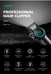 أشهر ماكينة حلاقة احترافية للحلاقين vgr اللي يحبون التميز ماكينة وزن مناسب للشغل وتصميم أنيق وجذاب وتعمل على سرعات متعددة الى 9000 RPM وفيها لمبه بتضوي وعم البطارية الى 260 دقيقة VGR - فيجي أر