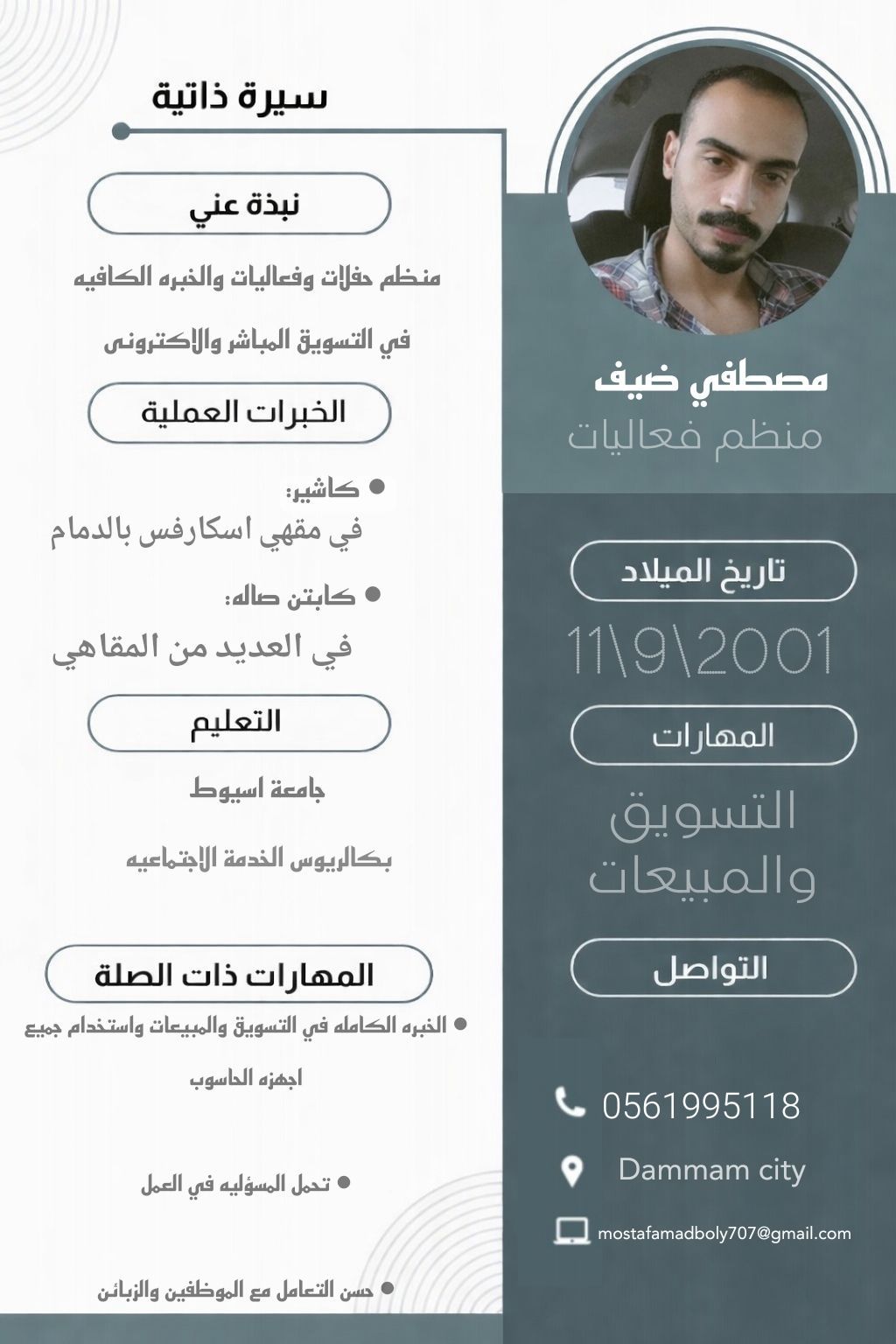 كابتن اوردر متاح للعمل إقامة سارية خبرة مجال الكافيهات سبق لي العمل ك كاشير وكابتن اوردر بأماكن معروفه في الدمام