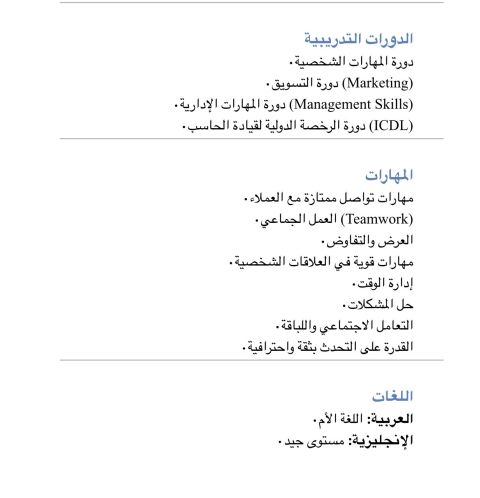 سوداني الجنسية متمرس في استخدام الحاسوب والخدمات العامة الضمان المطور حساب المواطن ابشر قوى مدد السجلات التجارية بلدي وخدمات الطالب حجز طيران المحاسبة الالكترونية أمين مستودع مدخل بيانات التقديم الجامعات البحوث حل الواجبات المدرسية فتح حسابات بنكية كاشير ناجز المطالبات التأشيرات المركز السعودي للأعمال الغذاء والدواء منصة صناعي