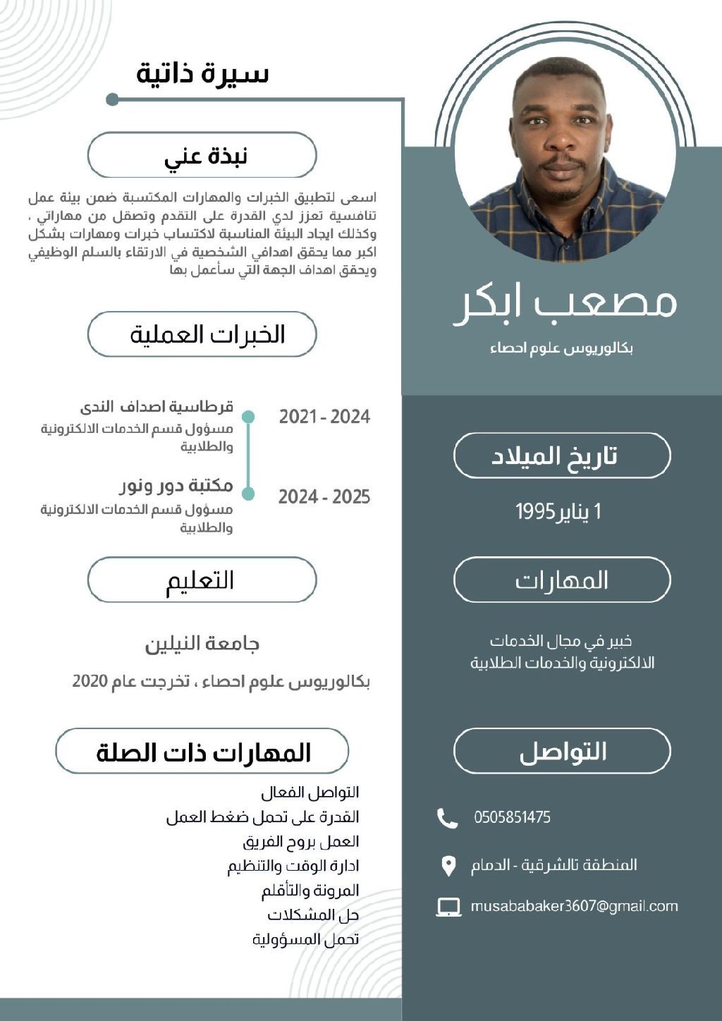 سوداني مقيم في المملكة مدينة الدمام، ابحث عن عمل في مجال القرطاسيات خبرة 5 سنة في مجال الخدمات الالكترونية والخدمات الطلابية