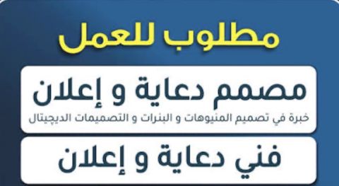 مطلوب مصمم لدية الخبرة الكافية للعمل في مجال الدعاية والاعلان وشغال على برامج فوتوشوب والاستريتر أو كورل درو الخ. منطقة العمل المنطقة الشرقية / حي / حفر الباطن ومناسب جدا. الراتب يبدأ من 1500 ريال مع السكن