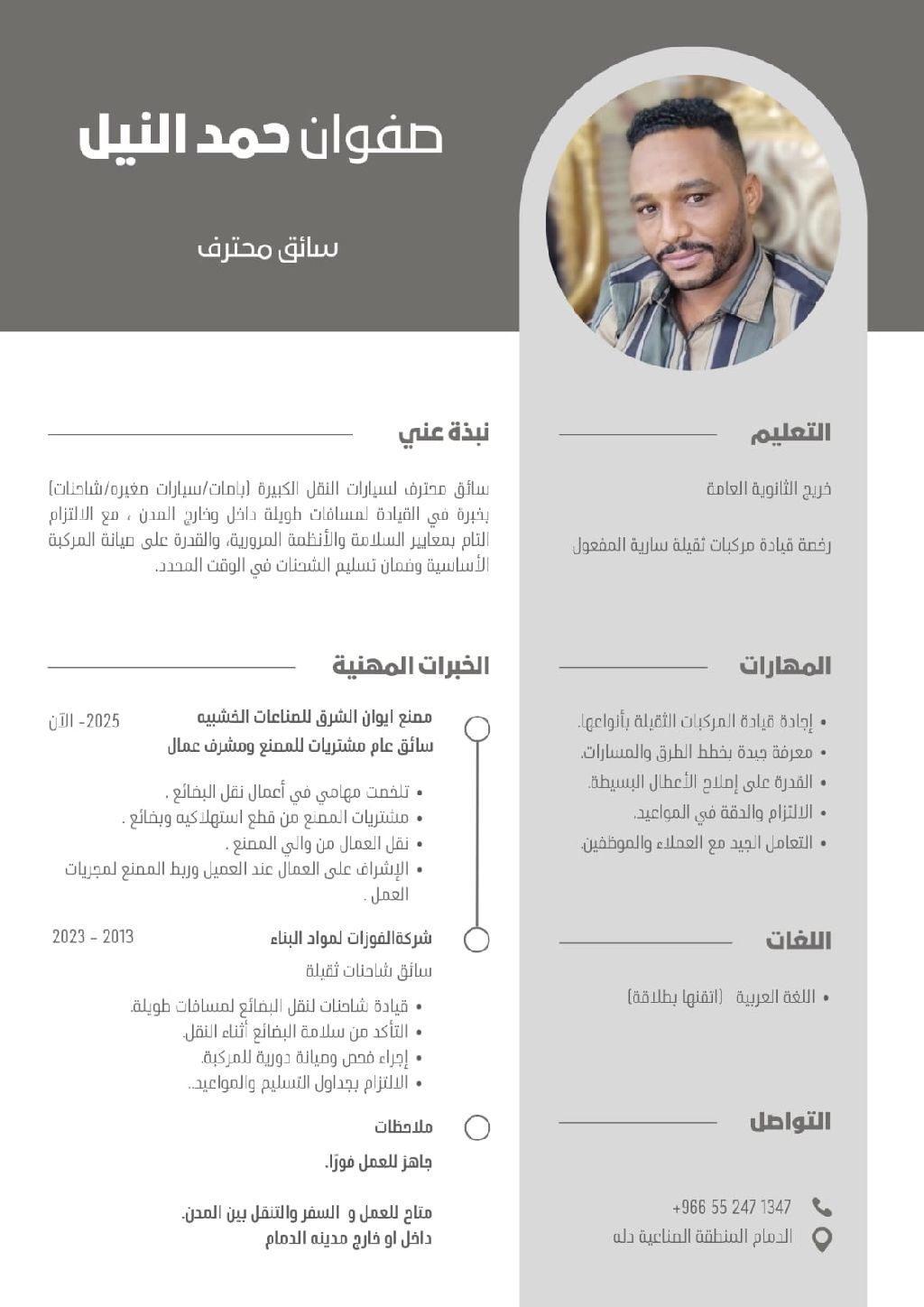 ابحث عن عمل سائق عمومي نقل ثقيل دينات باصات تريلات سيارات صغيرة خبرة اضافية في مجال المشتريات ومراقبة العمال، خبرة داخل المملكة 10 سنوات الآن موجودة في الدمام