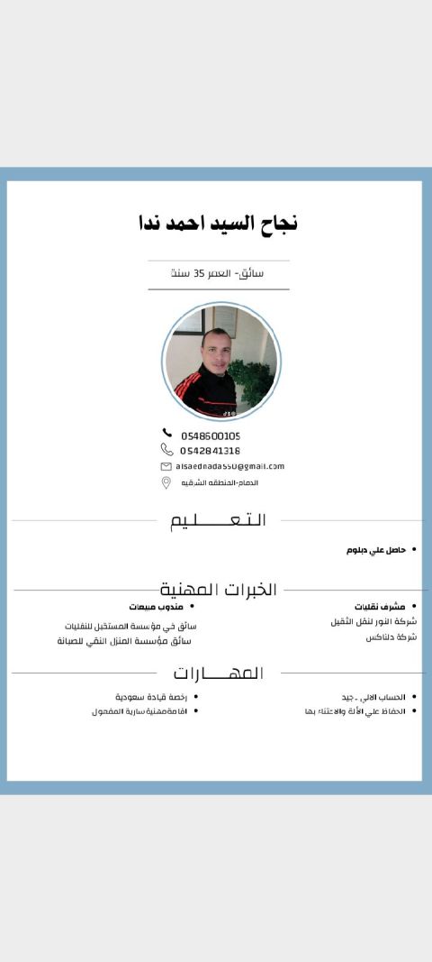 سائق عائلة رخصة سارية إقامة سارية أريد العمل في أي شيء لا يهم المظهر لائق جدا