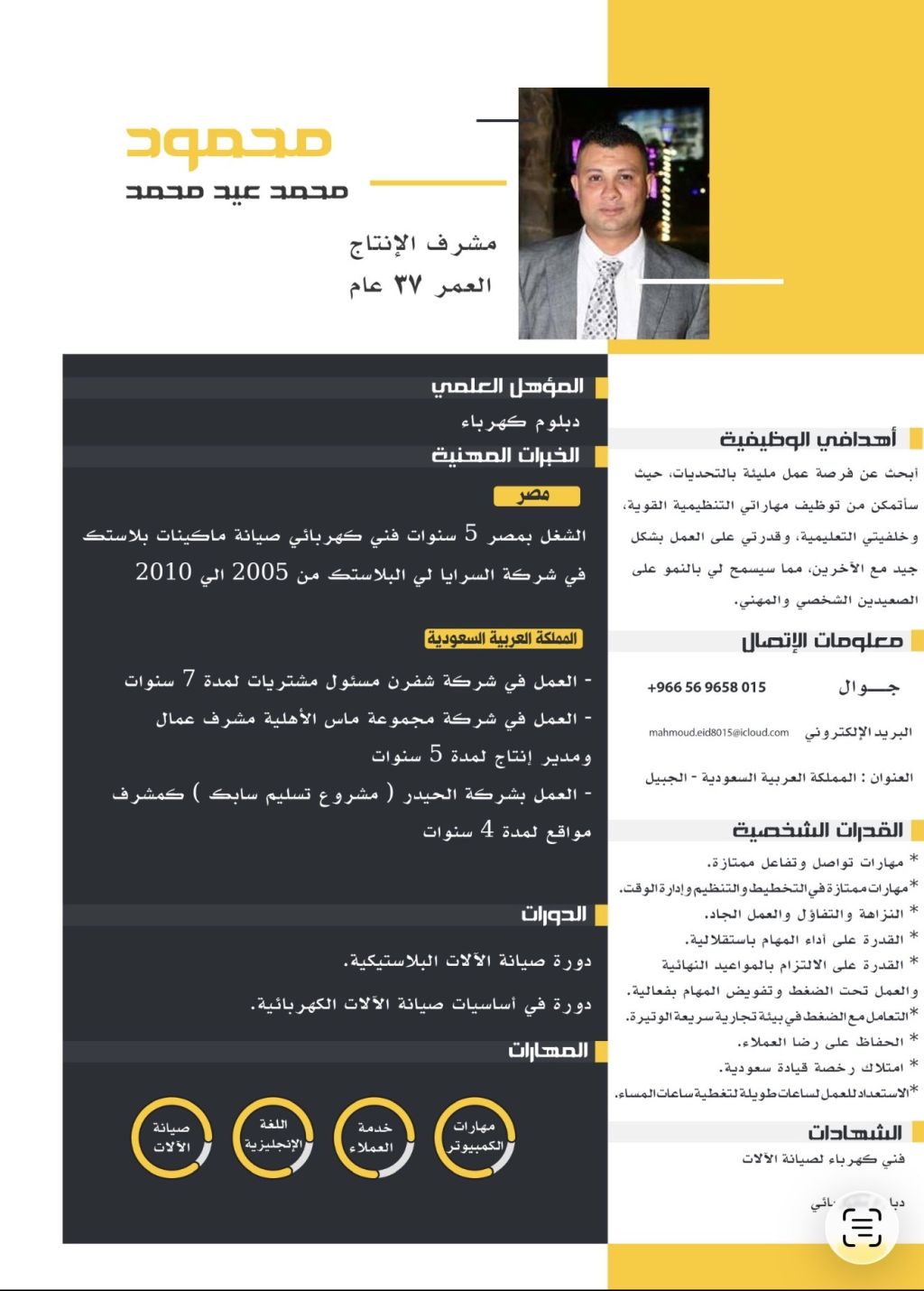 مشرف انتاج ومشرف عمال ومسؤول مشتريات خبرة 16 سنة في المنطقة الشرقية الإقامة الجبيل