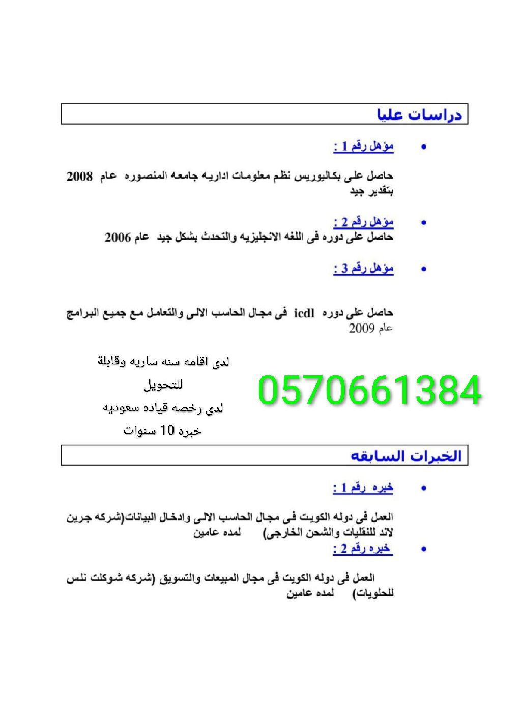 شاب مصري الجنسية ع خلق حسن المظهر حاصل ع بكالوريوس نظم معلومات اداريه بتقدير جيد ولدى خبرة في مجال المبيعات والتسويق والمشتريات وقيادة السيارات والشحن والتوصيل وادخال البيانات ع الكمبيوتر وتسويق المنتجات وعمل اعلانات ومتابعه الطلبات والعملاء