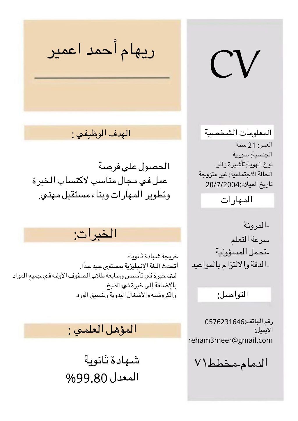 فتاة سورية بتأشيرة زائر ابحث عن عمل في الدمام بشرط أن يكون في محلات تجارية وأماكن معروفة ولا اعمل في البيوت أو الأماكن الغير مرخصة الراتب لا يقل عن 1500