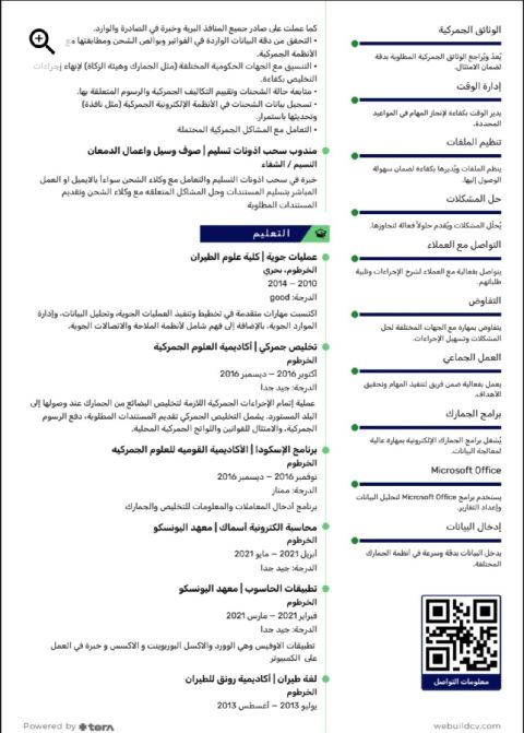 ابحث عن عمل أنا مخلص جمركي خبرة في الترجمة والتبنيد الصادر والوارد على جميع المنافذ البحرية والبرية والجوية وخبرة في سحب أذونات التسليم علي جميع المنافذ البحرية وطريقة التعامل مع وكلاء الشحن والعملاء
