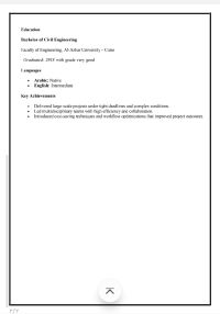 مهندس مدني انشائي خبرة 8 سنوات داخل السعودية مقيم في الدمام - السعودية، ابحث عن فرصة عمل مناسبة في مجال الاشراف والتنفيذ وإدارة المواقع لدي خبرة تتجاوز 8 سنوات في مشاريع كبرى داخل السعودية ومصر، تحت اشراف جهات مثل ارامكو - SIRC - China Railway. الخبرات الأساسية تنفيذ وإدارة مواقع المشاريع الانشائية. الاشراف على أعمال Post - Tensioning. تنسيق الأعمال المدنية والمعمارية. ادارة المقاولين والعمال