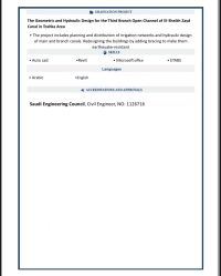 مهندس مدني ابحث عن فرصة عمل في السعودية. حاصل على بكالوريوس هندسة من جامعة فار وس ومعتمد من KTH السويدي حاصل على اعتماد الهيئة السعودية للمهندسين لدي خبرة في الاشراف على أعمال التشطيب والبناء ضمن مشاريع كبرى مع Miracle Middle East وBayut للتطوير العمراني، اضافة الى خبرة سابقة بقطاع الانشاء في وزارة الداخلية المصرية أتقن استخدام AutoCAD، Revit، ETABS، MicrosoftOffice ابحث عن فرصة عمل في الشرقية أو الرياض
