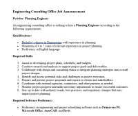 يعلن مكتب استشاري هندسي عن حاجته لتوظيف مهندس تخطيط الموقع الخبر، شارع الأمير مقرن، حي العقربية وفقا للمتطلبات التالية المؤهلات المطلوبة حاصل على درجة البكالوريوس في الهندسة خبرة في التخطيط - خبرة لا تقل عن 4 / 7 سنوات في مجال الالمام بالتخطيط - اجادة اللغة الانجليزية. المهارات المطلوبة 1. المساعدة في تطوير خطط المشروع والجداول الزمنية والميزانيات. 2. إجراء البحوث والتحليلات لدعم أهداف المشروع والمنتجات
