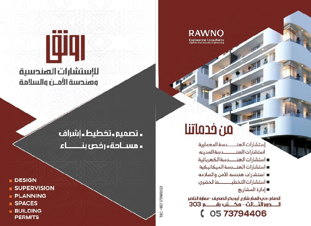 يعلن مكتب رونق للاستشارات الهندسية وهندسة الأمن والسلامة عن شاغر وظيفي مهندس معماري يجيد تصميم المخططات باحترافية والرسم الثري دي أو تو دي والقدرة على تحمل ضغط العمل ولديه عضوية الهيئة ولديه رخصة قيادة ولديه خبرة في منصة بلدي الموقع الدمام - حي المنار - شارع أب وبكر الصديق