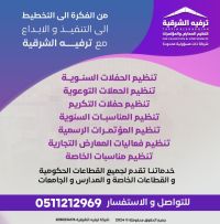 من الفكرة الى التنفيذ. ترفيه الشرقية تحقق رؤيتك باحتراف سواء كنت تخطط لحفل رسمي أو فعالية جماهيرية أو مناسبة خاصة، نحن في ترفيه الشرقية نتحمل عنك كل التفاصيل، ونحول الحدث الى تجربة لا تنسى خدماتنا تشمل تنظيم الحفلات السنوية الحملات التوعوية والتكريمية المناسبات والمهرجانات العامة المؤتمرات الرسمية والمعارض التجارية المناسبات الخاصة بكامل تجهيزاتها