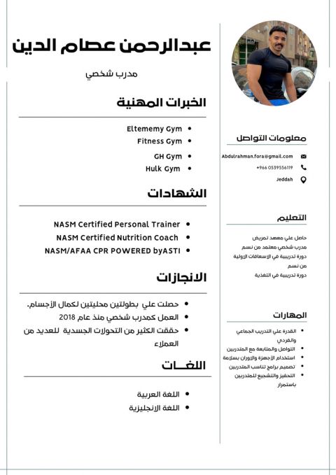 مدرب لياقة بدنية وكمال أجسام خبرة 7 سنوات موجود بالمملكة