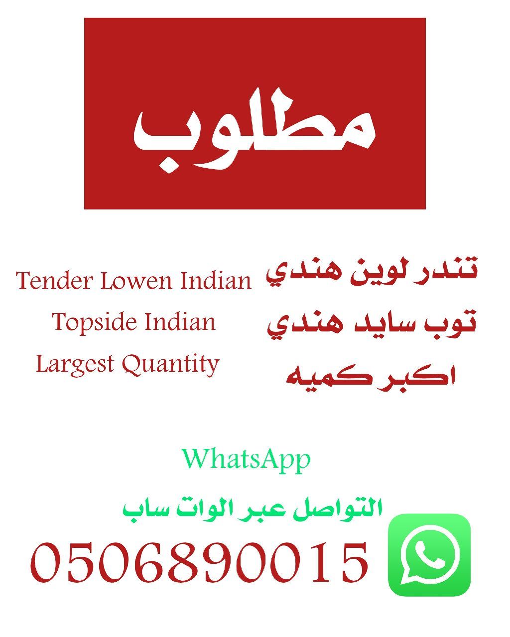 Wanted to buy Indian tenderloin fillet and topside beef in large quantities from any city in Saudi Arabia. Cash payment