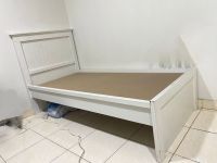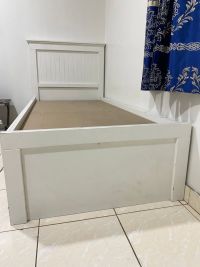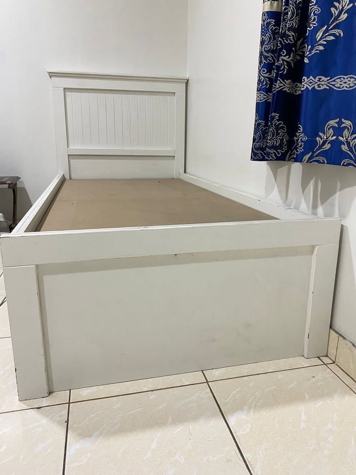 I want to sell my Wooden bed. Solid single wooden bed with a beautiful pine finish. Single wooden board. The bed frame takes any standard single mattress 3ft 190 cm x 90cm. Color Standard white. Frame size Single H 82cm L 198 cm W 98cm