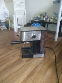 واحد مكنة قهوة لعمل القهوة الاسبريسو وواحد مطحنة قهوة