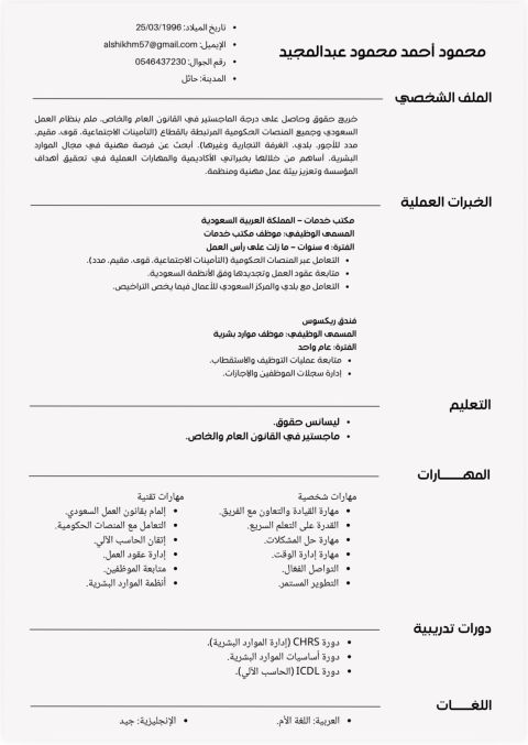 أخصائي موارد بشرية، حيث امتلك خبرة عملية في مجال الموارد البشرية تشمل التوظيف، وإدارة شؤون الموظفين، ومتابعة الاجراءات الادارية والتنظيمية داخل الشركات. أتمتع بمهارات جيدة في التواصل والعمل ضمن فريق، بالاضافة الى القدرة على حل المشكلات وتحقيق الأهداف التنظيمية بكفاءة