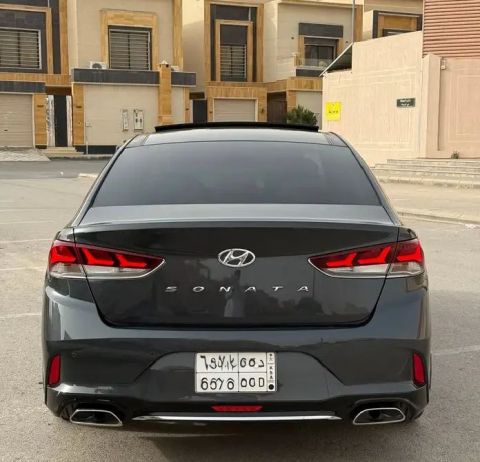 Hyundai Sonata half-option - petrol, model 2019, mileage 175,000 km, color gray, price 35,000 SAR, first owner, valid registration and inspection. Key features: cruise control, panoramic sunroof, key start, steering wheel controls, rear sensors, screen recorder, rear camera, anti-slip, power windows, power folding mirrors, mirror indicators, LED front lights, LED front, AUX.