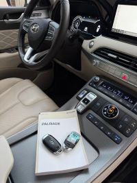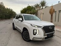 Hyundai Palisade HTRAC model 2022, mileage 89,000 KM, full options with top specifications (body and engines are agency-maintained, free of any issues). Specifications: Exterior color - pearl white, interior color - off-white diamond leather, 6-cylinder engine, dual 4x4 with multiple modes, digital dashboard with multiple modes including sport and sport plus, keyless entry, fuel-saving ECO system, front and rear seat cooling/heating, all seats are electric and adjustable, electric trunk door.