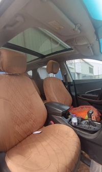 Santa Fe 2014, half-option, automatic transmission. Current mileage is 567,098 km. The car has fingerprint start and sunroof, 6-cylinder engine. The engine was overhauled a year ago and is in good condition, and the transmission is sound. The exterior cover was changed. The AC does not work; I went to AC shops and they said to change the sensor, but I haven't changed it yet. Everything else is fine. The bumpers are intact, some scattered touch-up paint, clean interior, no accidents. The car has been inspected and has insurance. Quick sale needed. Forget it, the car is 20, from my perspective.
