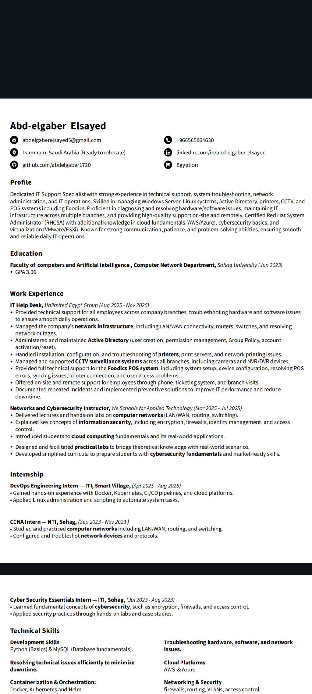 ابحث عن وظيفة في مجال IT الشبكات وأنظمة الحماية والسيرفارت خبرة في مجال سنتين