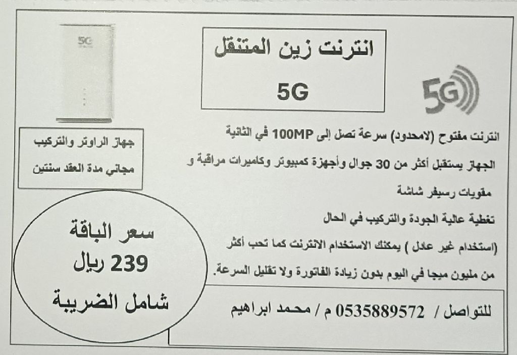 انترنت لا محدود داخل وخارج الطائف تغطية عالية الجودة والتركيب في الحال
