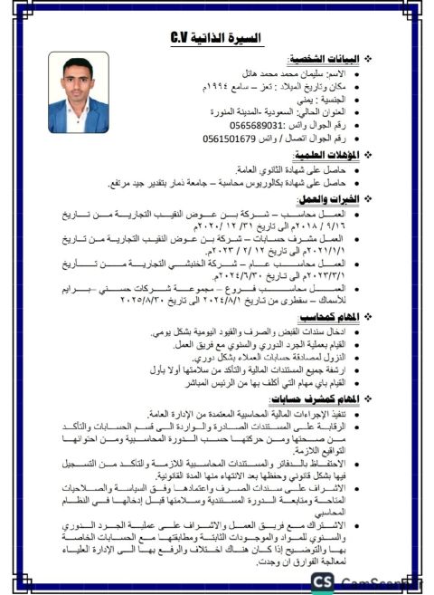 محاسب بدرجة البكالوريوس يمني الجنسية حاصل على شهادة خبرة من عدة شركات بخبرة 7 سنوات في مجال المحاسبة بدرجة مشرف حسابات القدرة على اعداد الاقرارات الضريبة الشهرية أو الربع السنوية اجادة استخدام برامج المحاسبة (مثل Excel، ERP) مهارات عالية في التعامل مع الأرقام والتحليل المالي دقة في العمل، والتزام، وقدرة على العمل تحت الضغط إدارة السجلات المالية اليومية وضبط القيود المحاسبية مقيم في المدينة المنورة