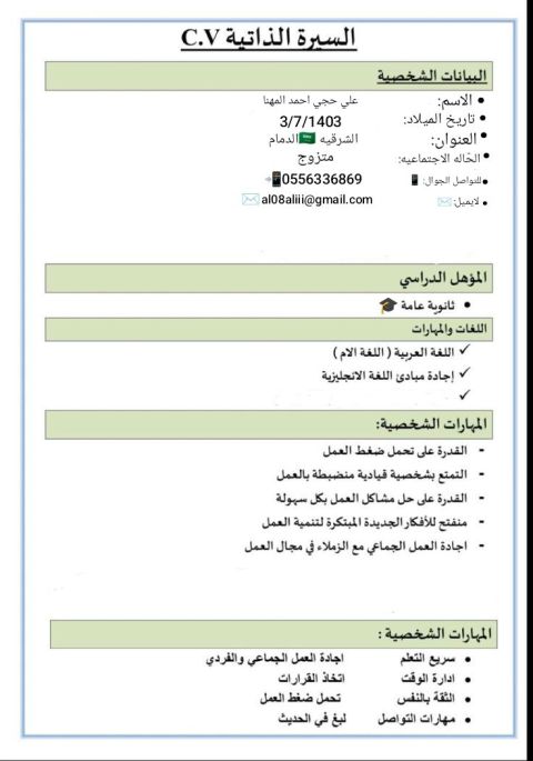 جميعا. ابحث عن وظيفة شاغرة. يفضل الوظيفة تكون في الشرقية أو الرياض. يفضل الراتب مناسب. للتواصل. أبو عبد الله