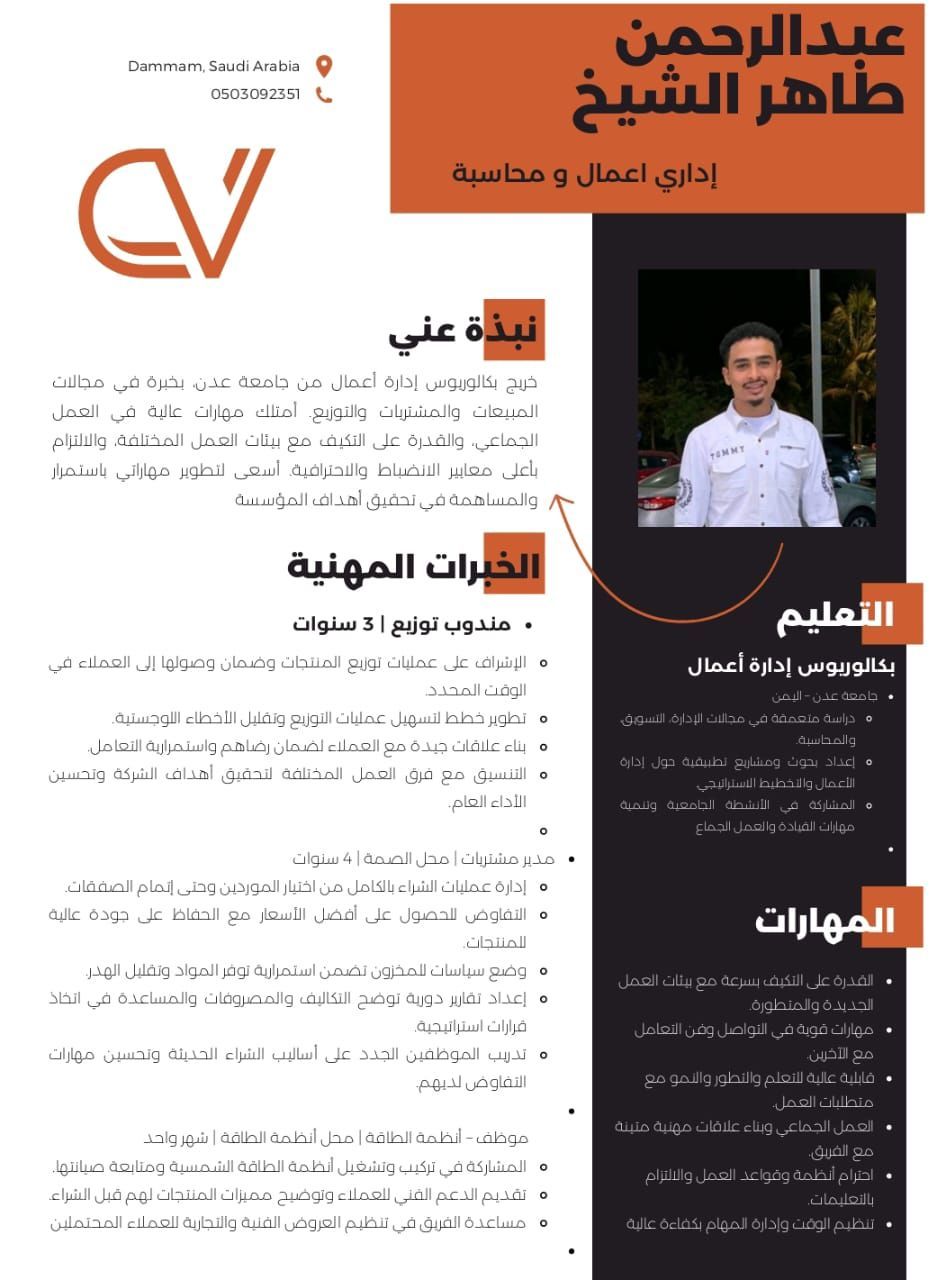 أنا عبدالرحمن طاهر الشيخ من موليد السعودية يماني الجنسية عمري 23 سنة وابحث عن عمل